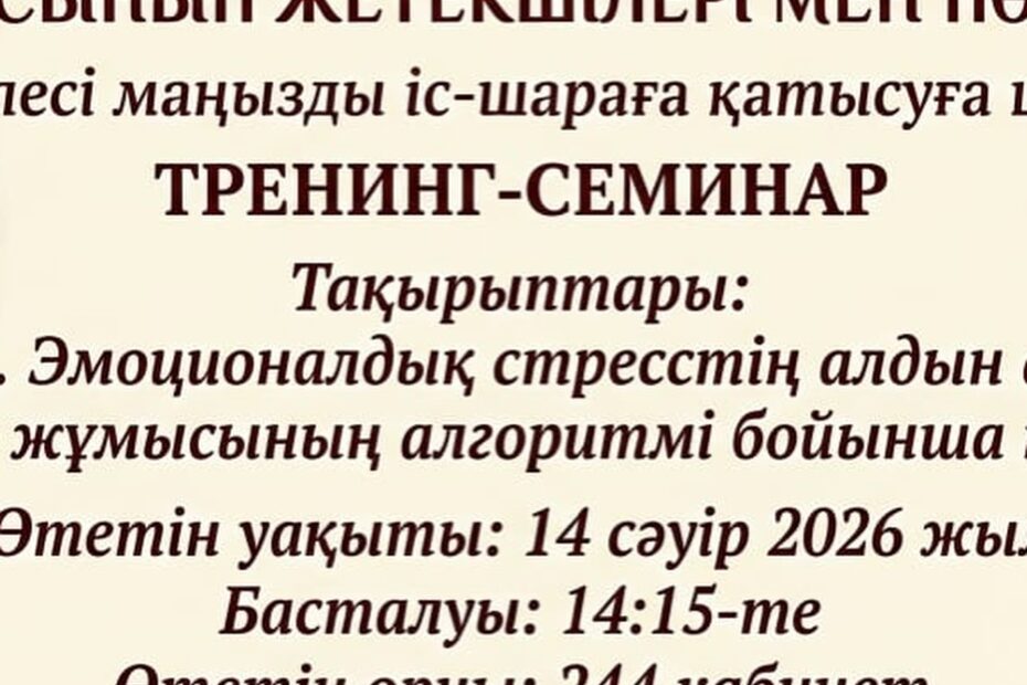 Мектебімізде 5-10 сынып жетекшілері мен пән мұғалімдеріне арналған «Эмоционалдық стресстің…Сәуір 15, 2026Сәуір 16, 2026
